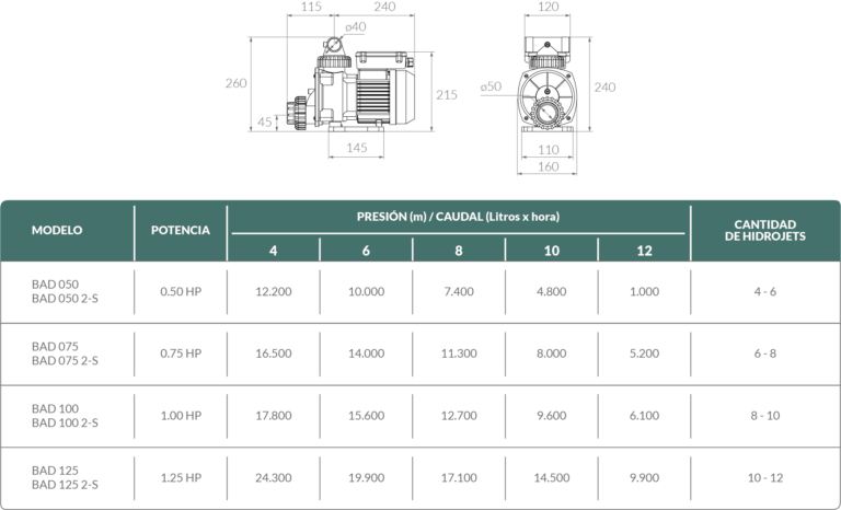 Bomba autodrenante BAD 100 - 1.00HP Vulcano. Diseñada especialmente para sistemas de hidromasajes y spas, dando un óptimo rendimiento de presión-caudal y con la capacidad de auto evacuar toda el agua de su interior.