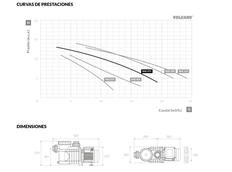 Bomba autocebante para piscina BAE 075 Vulcano. Su diseño confiable la convierte en la elegida por los instaladores.
