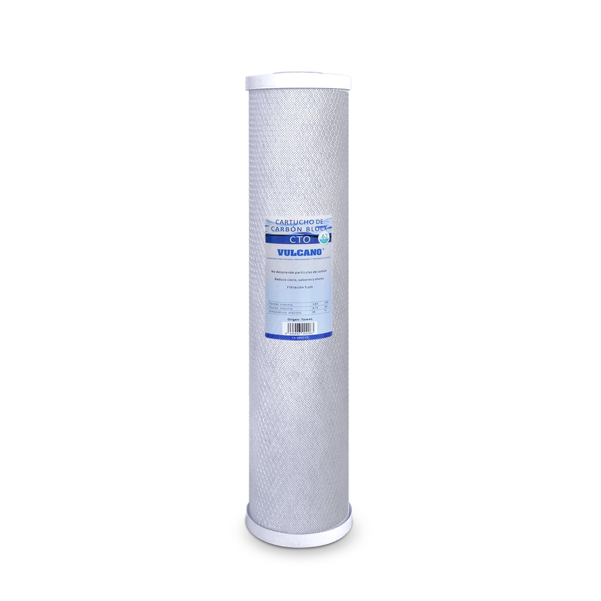 Cartucho Carbón Block BIG 4.5" (ø114 mm), largo 20". Utilizados para eliminar el mal olor y sabor presentes en el agua.