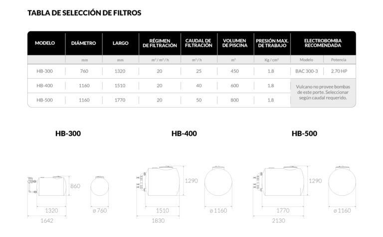 • En todos los modelos de la serie HB el régimen de filtración es de 20 m3/h x m2.